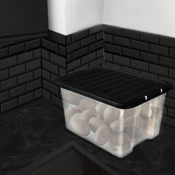 With its practical design and stylish black lid, our Plastic 35 Litre Box with Black Lid offers a sleek and functional storage solution for a wide range of storage needs. Keep your belongings organized and easily accessible with this durable and versatile storage box.